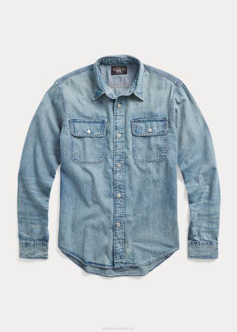 Workshirt Made From Lightweight Japanese Denim. Yarn-dyed With True Indigo. Medium-blue Wash With Hand-distressing. Sanforized To Minimize Shrinkage.